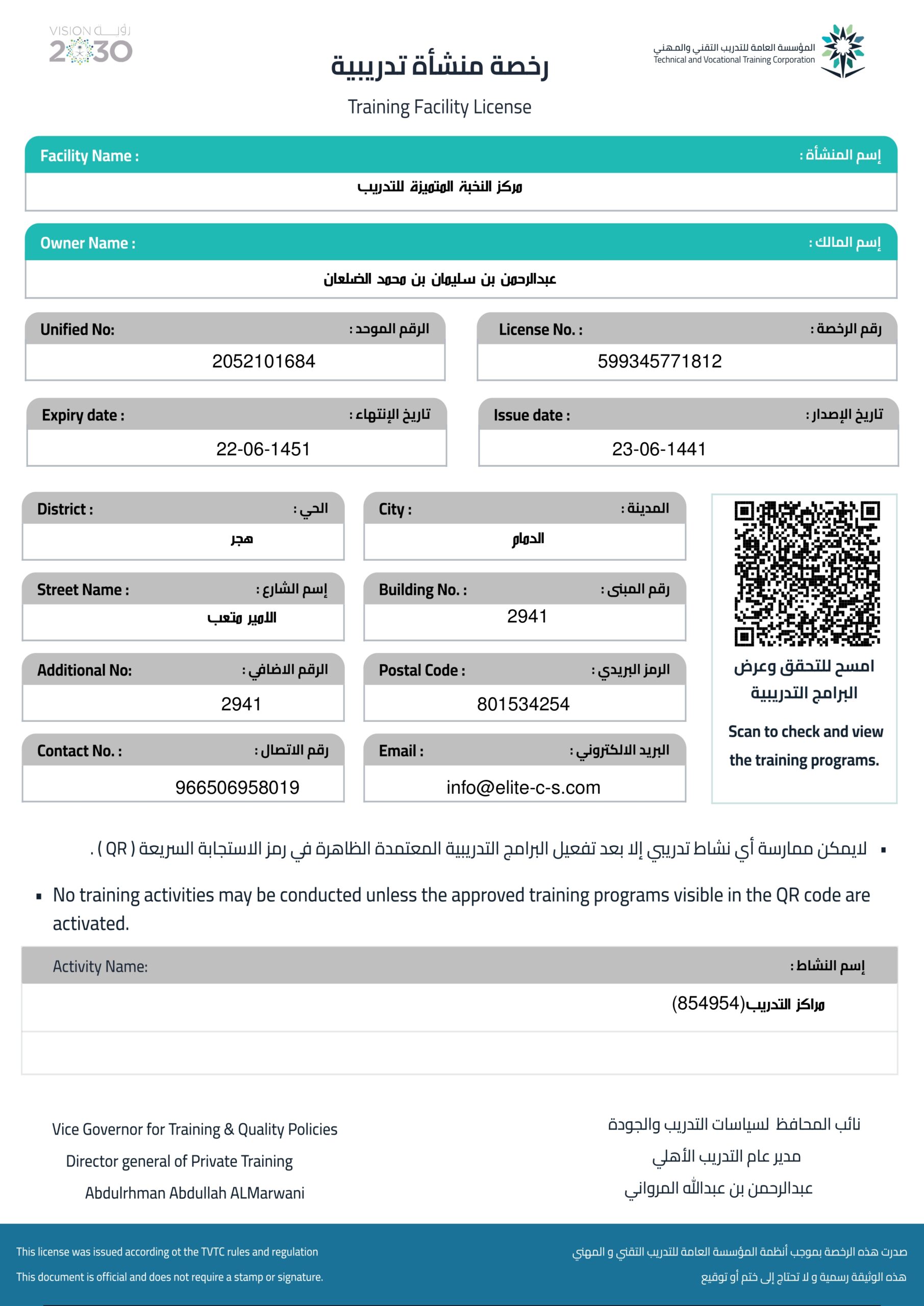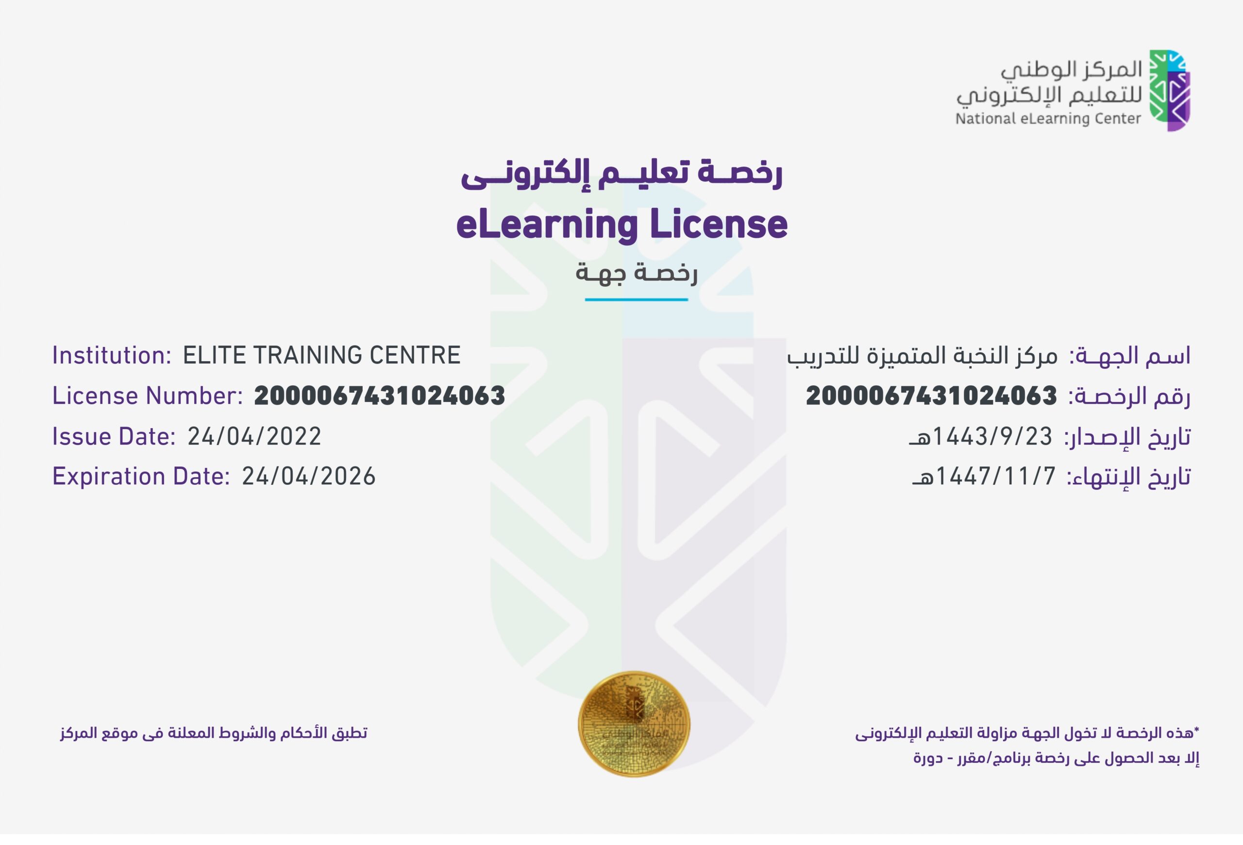 Elite Training is a locally accredited training center in the Kingdom of Saudi Arabia by the Technical and Vocational Training Corporation (TVTC) and the National Center for e-Learning.
