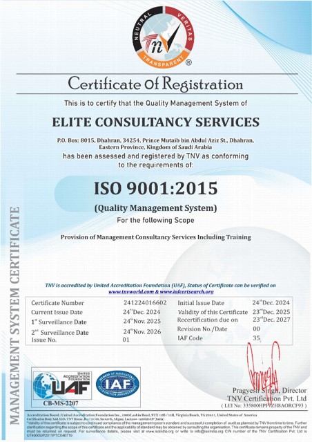Therefore, Elite Training aspires to be the most trusted entity by its clients, both within the Kingdom of Saudi Arabia and beyond, in terms of training quality and the successful achievement of desired goals with professionalism.
